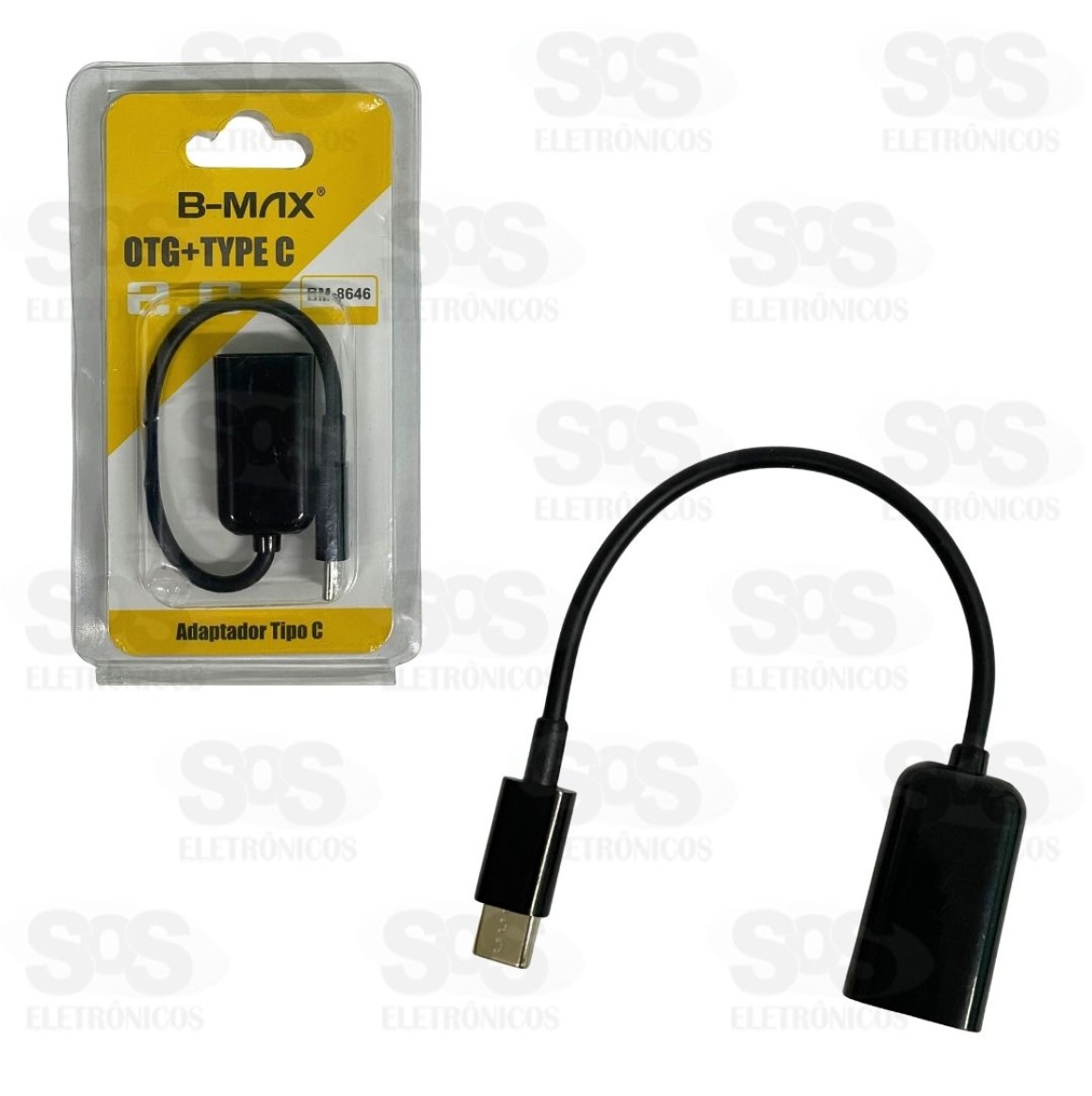 Adaptador OTG Para Type C 2.0 B-Max BM-8646 Ideal para transmissão de dados entre aparelhos com conexão USB. Resistente e portátil. Uma ponta é Type-C e a outra é USB 2.0. Tamanho: 17 cm