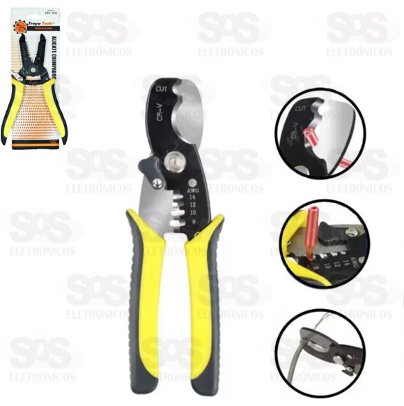 Alicate desencapador é utilizado para cortar e desencapar cabos elétricos por profissionais que trabalham em instalações de redes telefônicas e computadores.