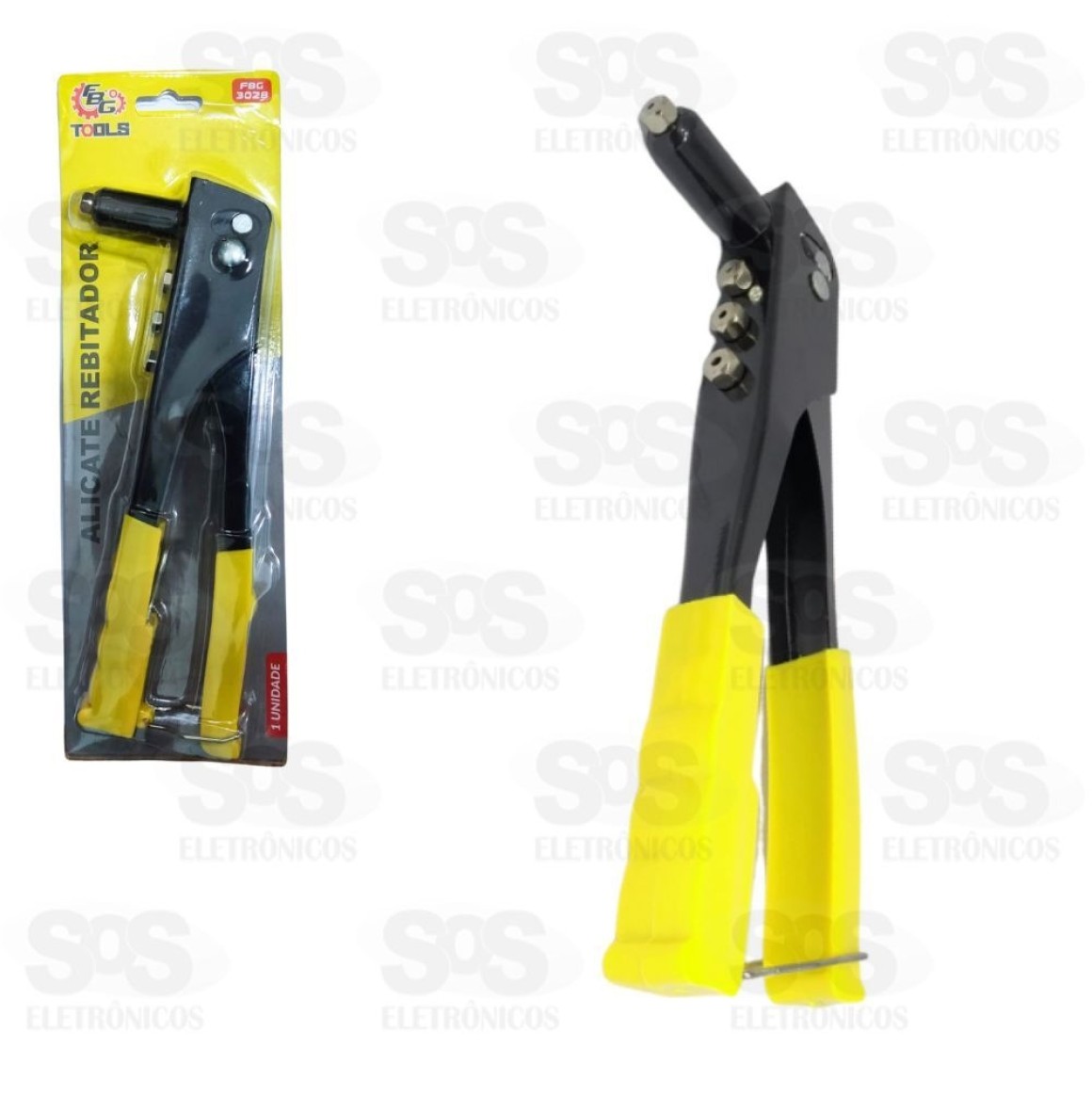 Descrição: Alicate rebitador específico para aplicação de rebite pop em aluminio, lonas, couro, ferro e madeira. Alça de borracha. 4 tamanhos de rebite - 2.4mm / 3.2mm / 4.0mm / 4.8mm