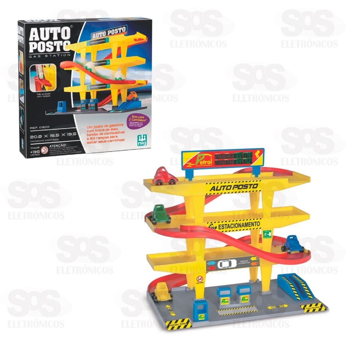 Auto Posto Com 2 Carrinhos Nig Brinquedos 300
