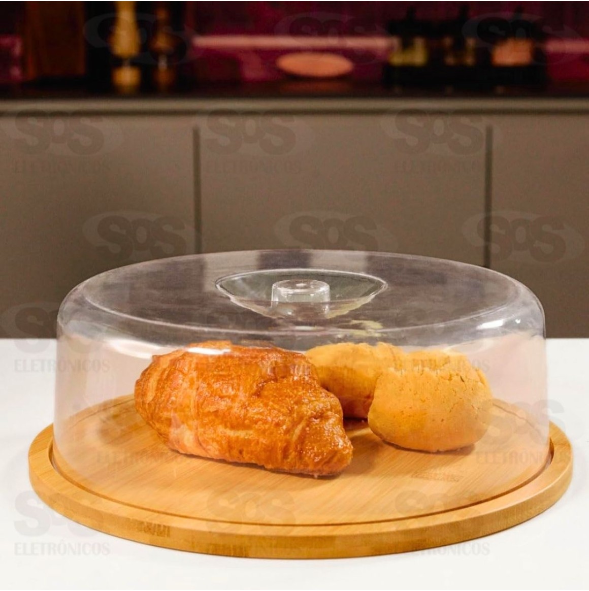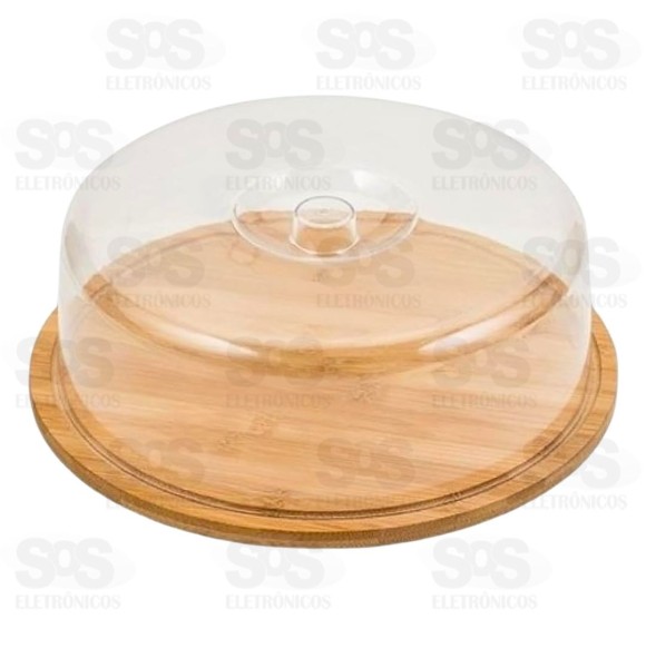 Boleira de Bambu 28CM Top Útil TOP2167 Boleira de bambu com design moderno e elegante. Use para servir ou guardar bolos e outros doces. Material resistente. Tamanho: 28 x 9 cm
