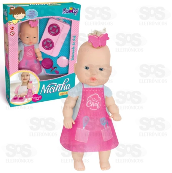 Boneca Nicinha Mini Chef 1164 A brincadeira está completa, acompanha fogaozinho e panelinha Medidas da boneca: 23 cm Medidas: 34 x 7 x 24,5 cm Ref: 1164 Marca: Nova Toys