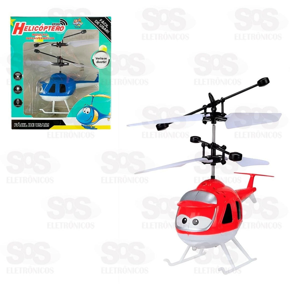 Brinquedo Helicóptero Por Indução Com Luz Toy King TK-2387 Helicóptero que possui sensor infravermelho e VOA SOZINHO. Leve, pequeno e fácil de brincar. Basta ligar e deixar ele partir com a decolagem automática, colocando a mão em baixo ele permanece no alto, tirando a mão ele pousa sozinho. Duração do vôo: Aproximadamente 10 minutos. Alcance aproximadamente: 3 metros de altura. Muito simples e intuitivo, as crianças vão adorar. Brinquedo recarregável via cabo Micro USB. Tamanho do helicóptero: 12 x 10 cm (C x A) Cores variadas.