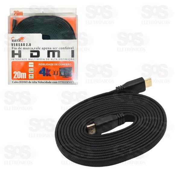 Cabo HDMI 4K 20 Metros Malha Blindada Eletromex EL-8107