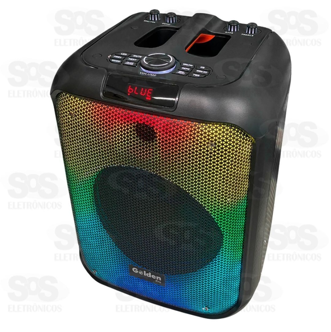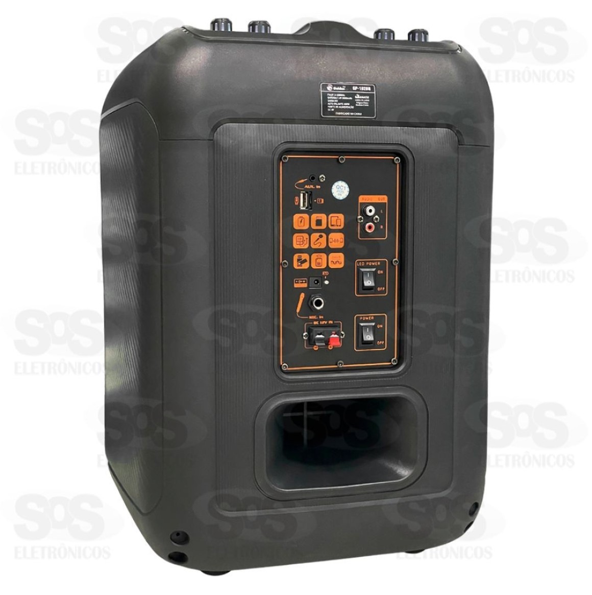 Caixa de som de alta potência com entrada para USB, cartão TF, cabo AUX e microfone.