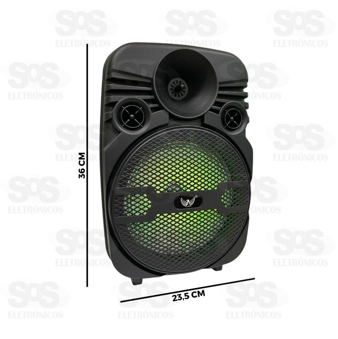 Possui alto-falante de 8 polegadas.