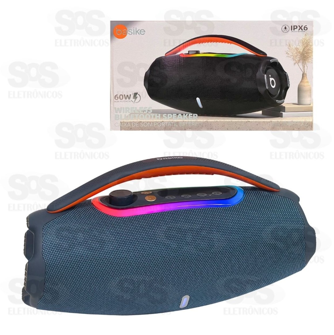 Caixa De Som Bluetooth 60W Basike Ba-RAD172 Caixa de som portátil de alta potência. Conexões bluetooth e TWS, garantem um som limpo e claro. Entradas para USB, cartão TF e cabo AUX. Possui dois alto-falantes de 93mm. Graves mais profundos e agudos nítidos garantem qualidade de som mesmo em ambientes barulhentos. Design moderno, com proteção IPX6 resistente à água e poeira. Bateria recarregável de 8000mAh. Efeitos de iluminação em LED. Com alça para transporte. Tamanho: 38 x 19 cm Cores variadas.