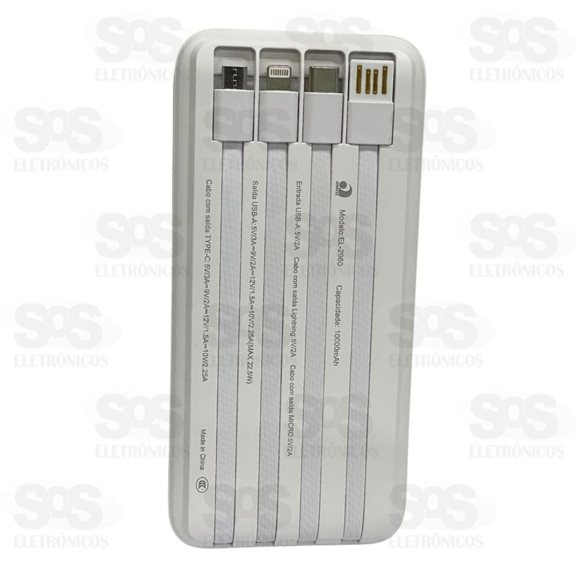 Carga Extra 10.000mAh 4 Interfaces Eletromex EL-2960