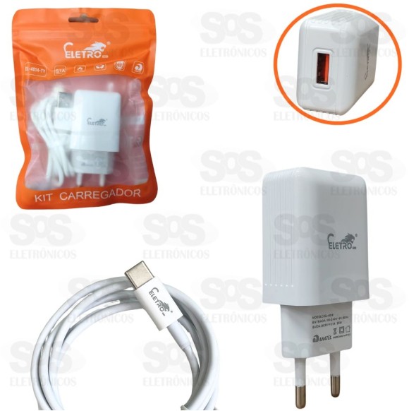 Carregador 25W USB 5.1A Com Cabo Type -C Eletromex EL-4014-TY