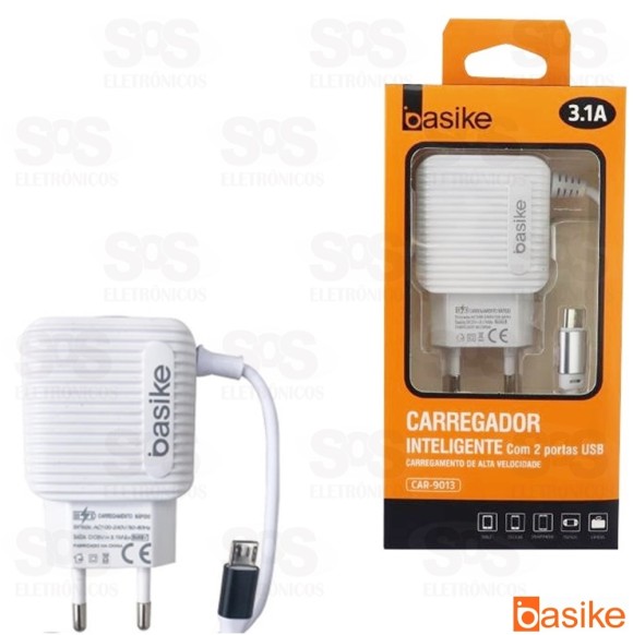 Carregador Micro USB V8 3.1A 2 USB BASIKE CAR-9013