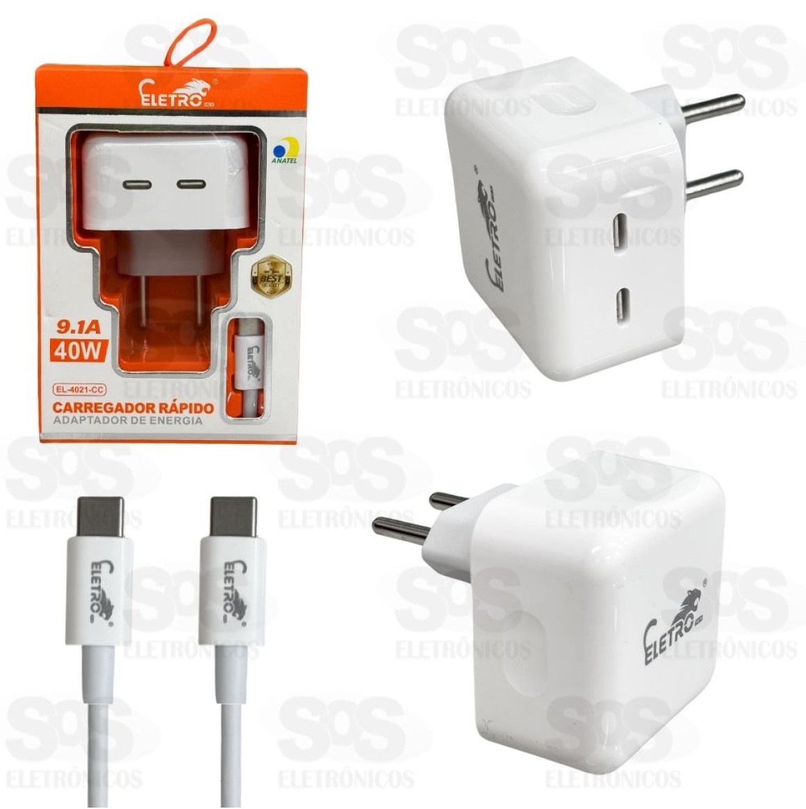 Carregador Turbo Type C 45W 9.1A + 2PD Eletromex EL-4021-CC