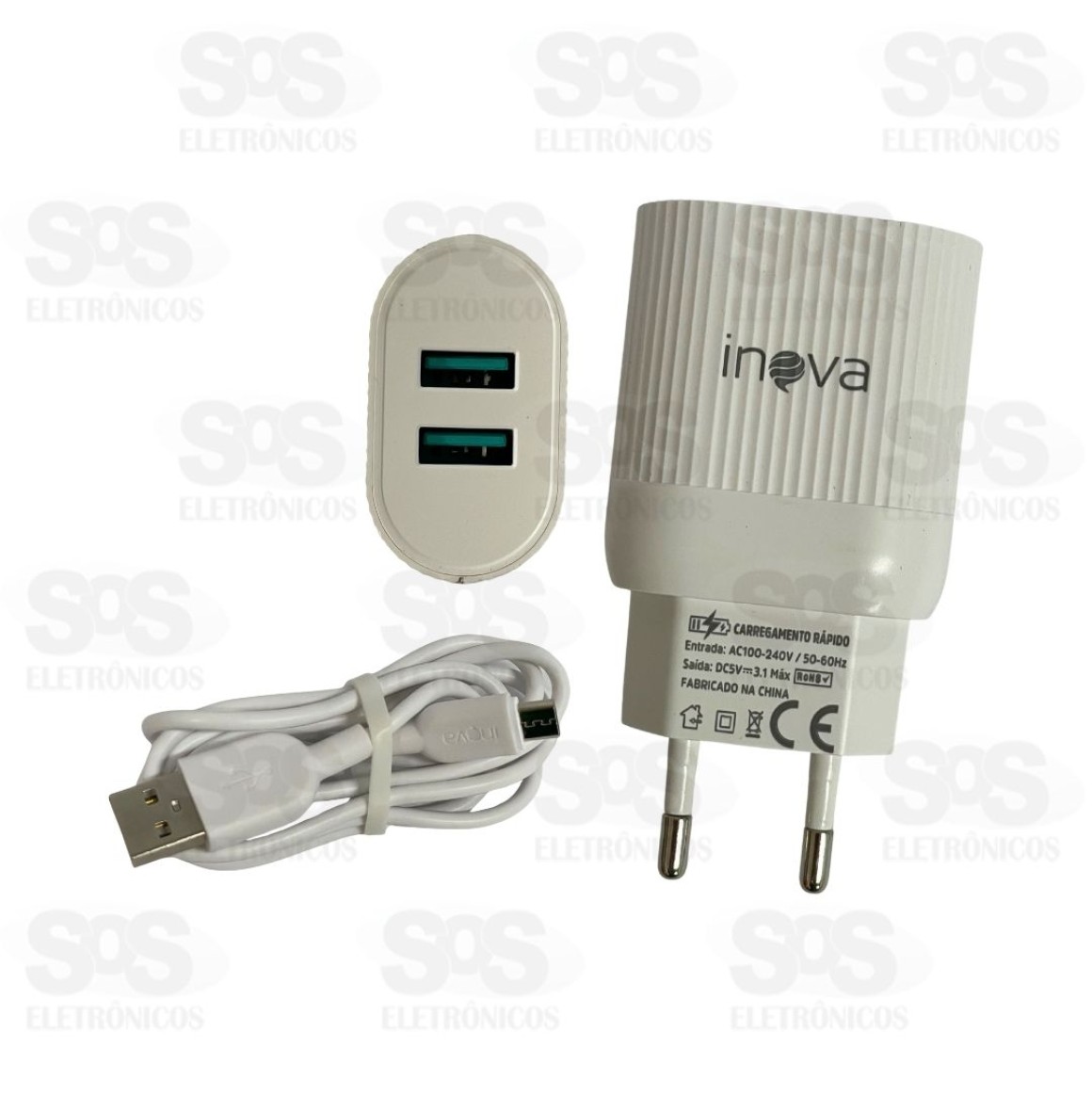 Carregador 2 USB 3.1A Cabo Micro V8 Inova CAR-3296S