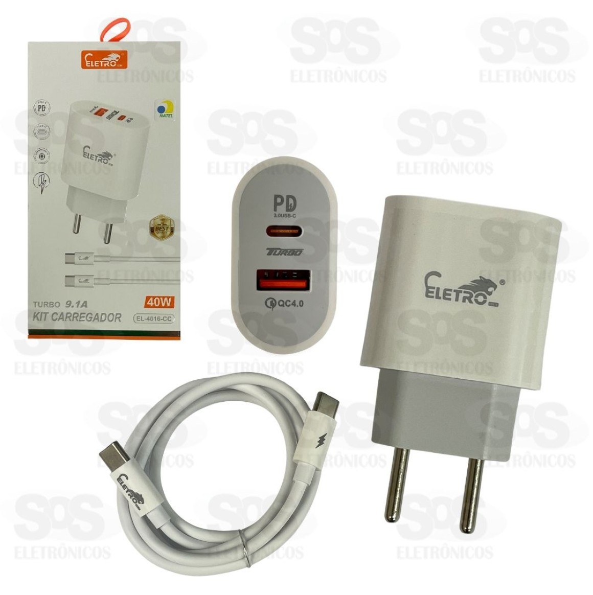 Carregador Turbo 40W Com Cabo Type C Eletromex EL-4016-CC