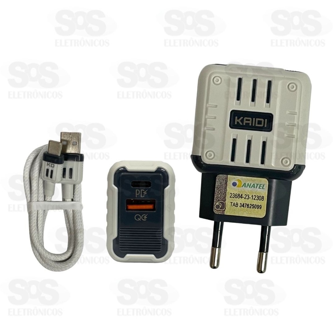 Carregador Turbo USB+PD 20W Cabo Type C Kaidi KD-691C Carregador turbo com dupla entrada, sendo uma USB e outra Type C. Estrutura robusta e resistente. Potência máxima de 20W. Acompanha cabo Type-C de 1 metro. Cores variadas.