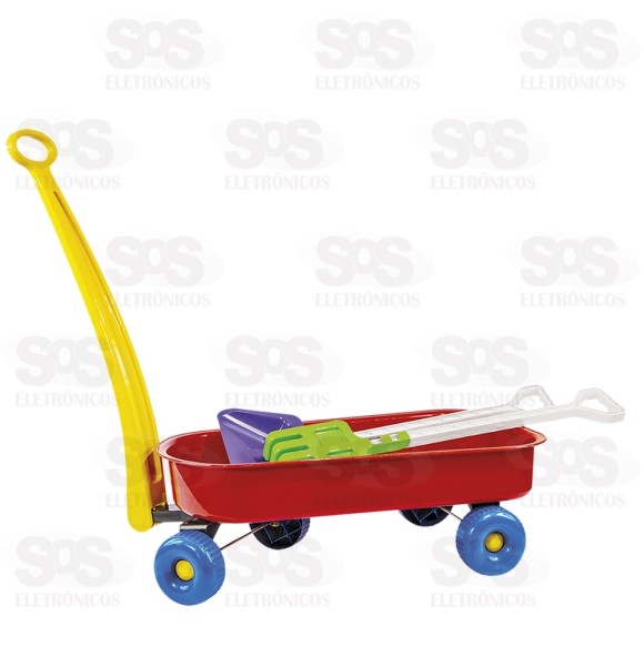 Feita em material super-resistente e rodas na medida certa para trilhar os caminhos mais sinuosos, vem com 1 Pá e 1 Rastel.