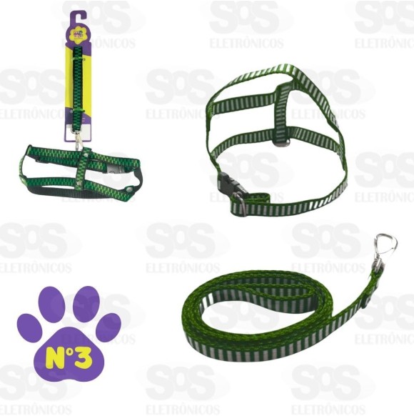 2. Coleira Peitoral Com Guia Nylon Listrada N°3 3099