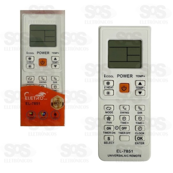 Controle Remoto Para Ar Condicionado Eletromex EL-7851 Embalagem: Unitário - Pilhas não Incluído Fabricante: Produto Importado (Genérico / Paralelo) Não precisa programação, apenas colocar as pilhas e usar.