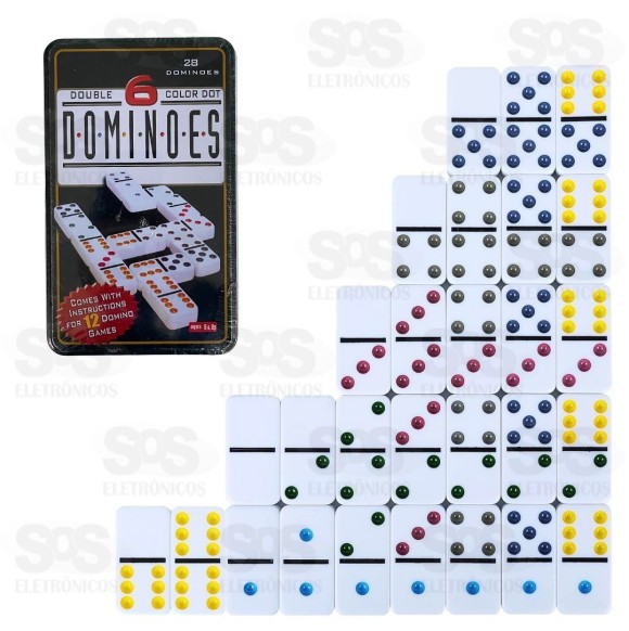 Dominó 28 Peças Coloridas Estojo de Metal MAX-69000-4