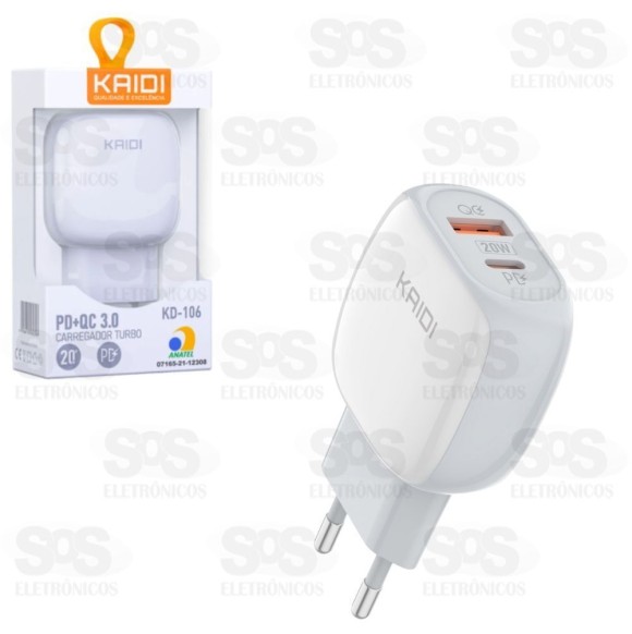 Com porta USB e Type Garante um carregamento rápido e estável.Potência máxima de 20W.Cor: branco