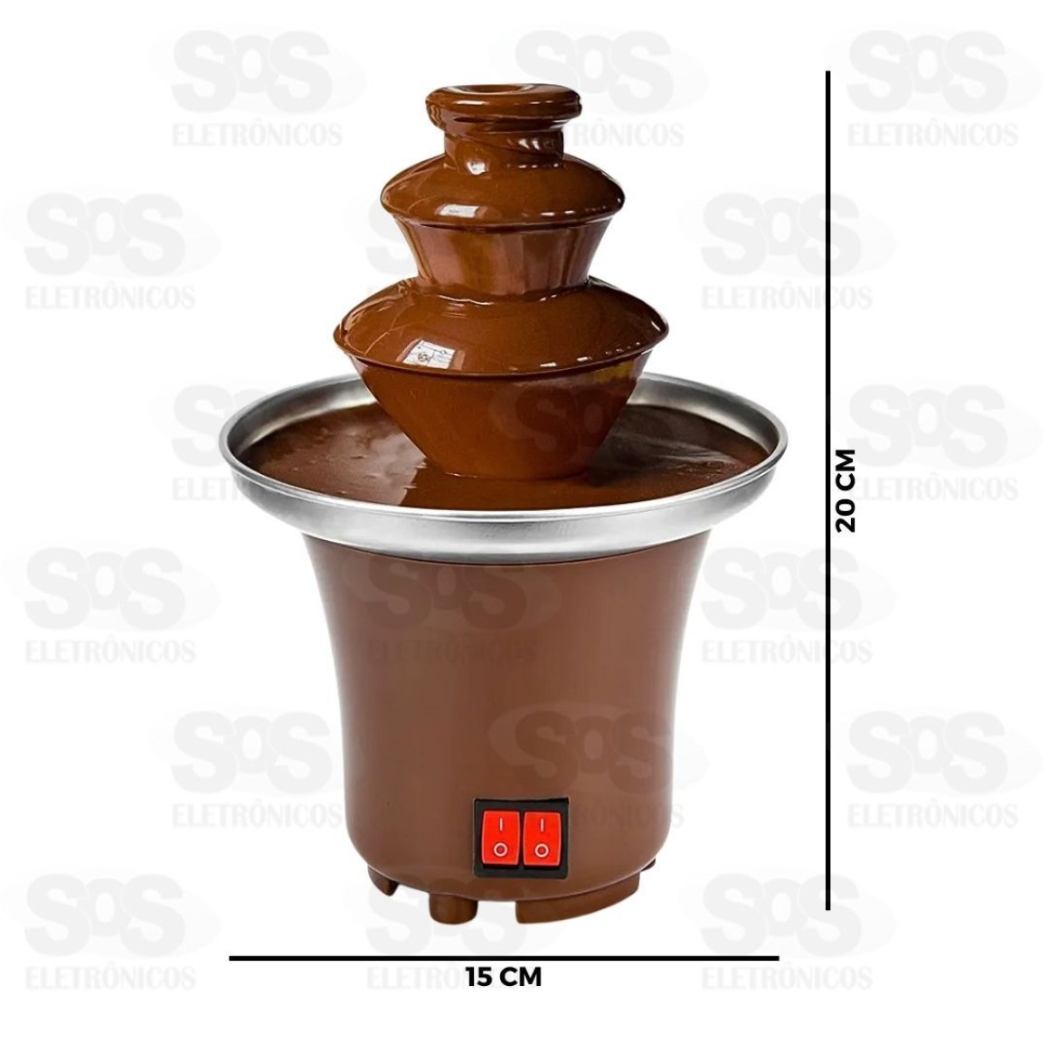 Fonte de Chocolate 35W/220V Tomate MAZ-121B Uma maneira gostosa e divertida de mergulhar as frutas em chocolate quente e derretido. Compacta e portátil, pode ser usada em casa ou em festas. O chocolate deve ser colocado já derretido. Material de aço inoxidável. Com botão liga/desliga. Potência: 35W Tensão: 220V Tamanho: 20 x 15 cm