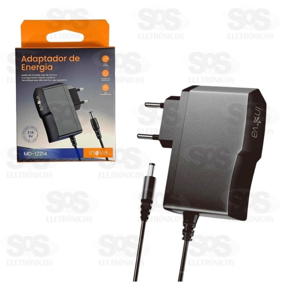 Fonte 9V/3.1A Plug P4 Bivolt Inova MD-12214 Fonte bivolt compatível com diversos aparelhos. Conta com sistema inteligente de proteção. Voltagem: 100 - 240V / 50-60Hz Corrente: 9V/3.1A