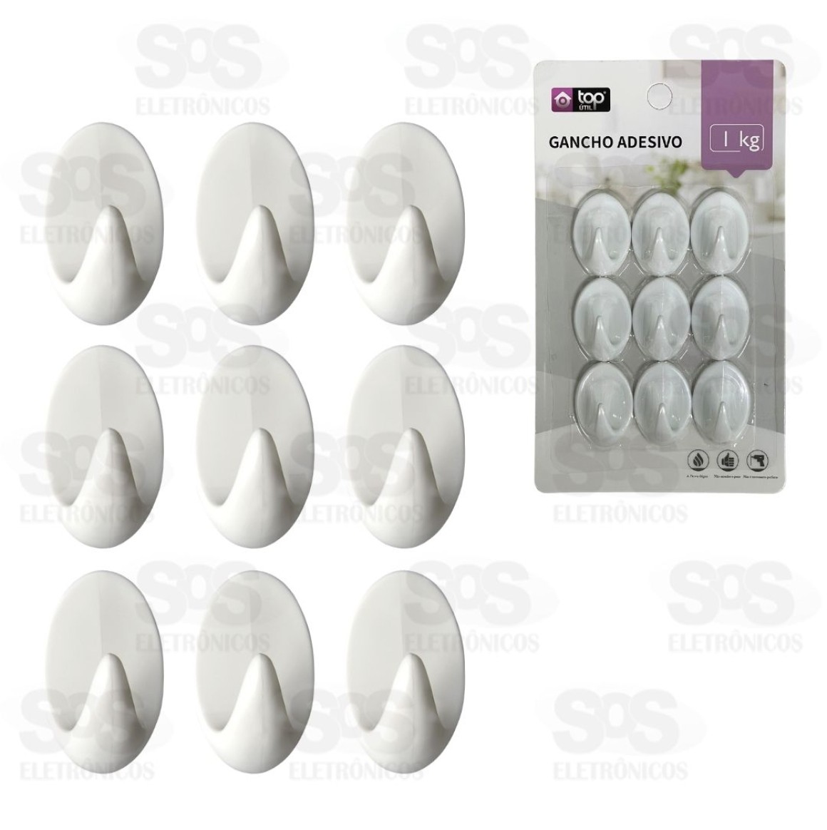 Ganchos Multiuso Adesivo 9 Unidades Top Útil TOP2009
