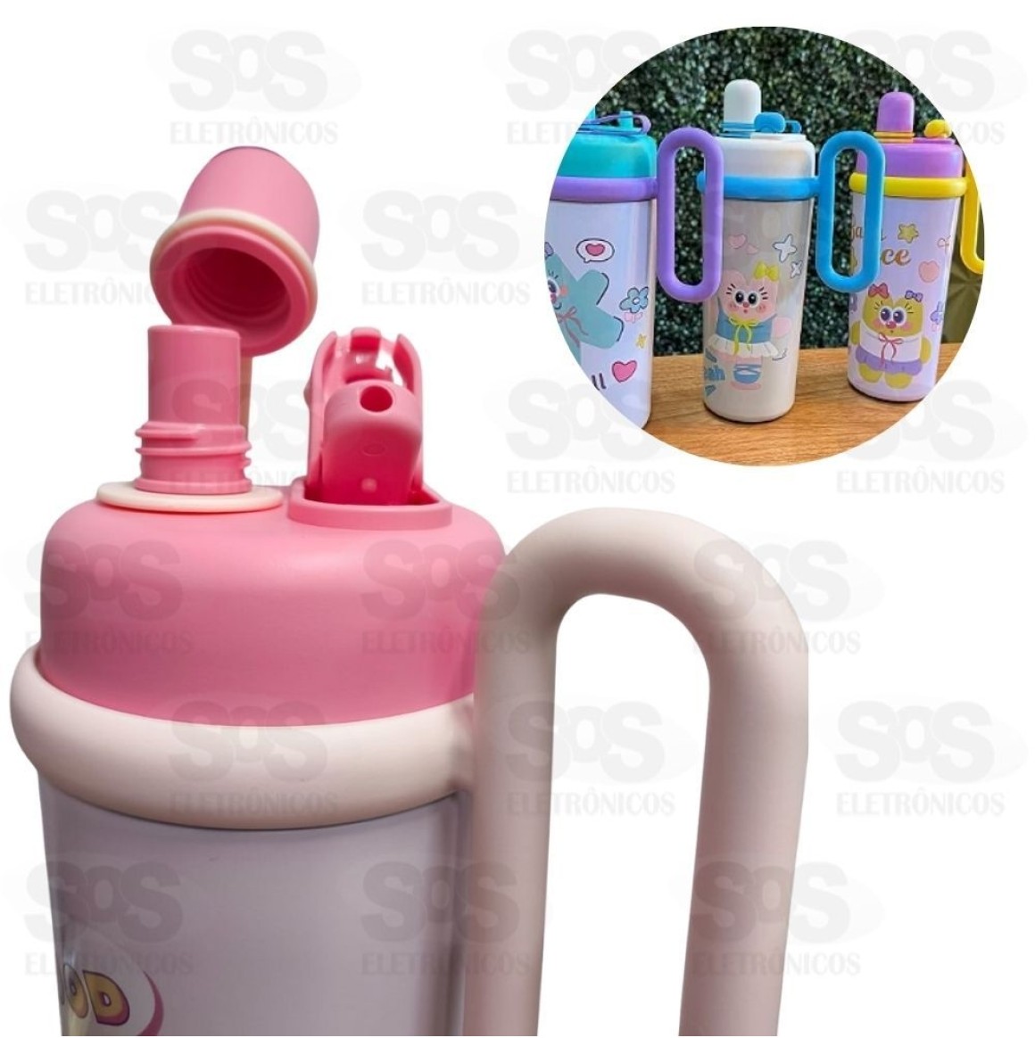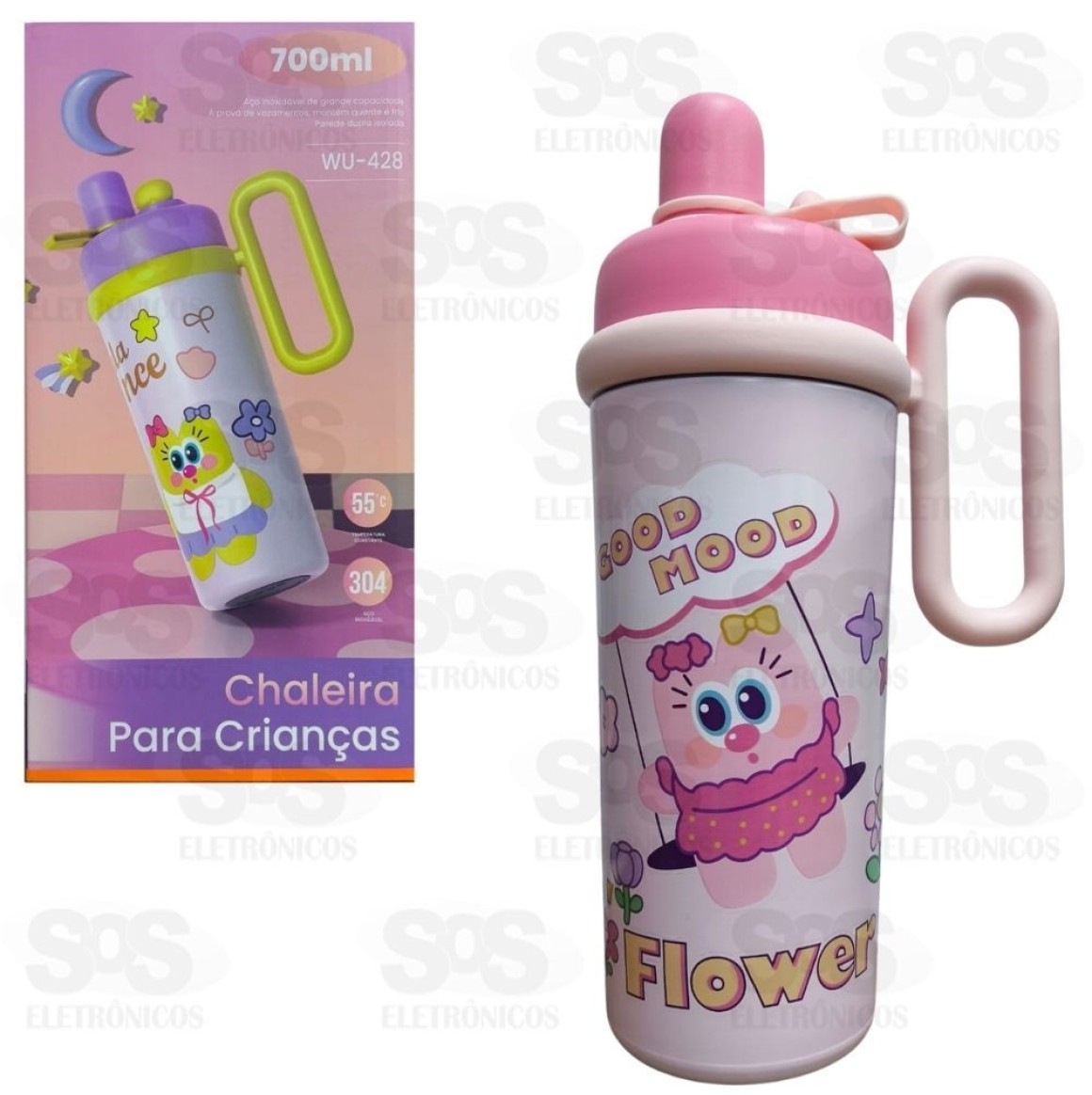 Garrafa Térmica 700ml Infantil Com Alça Estampas Variadas WU-428