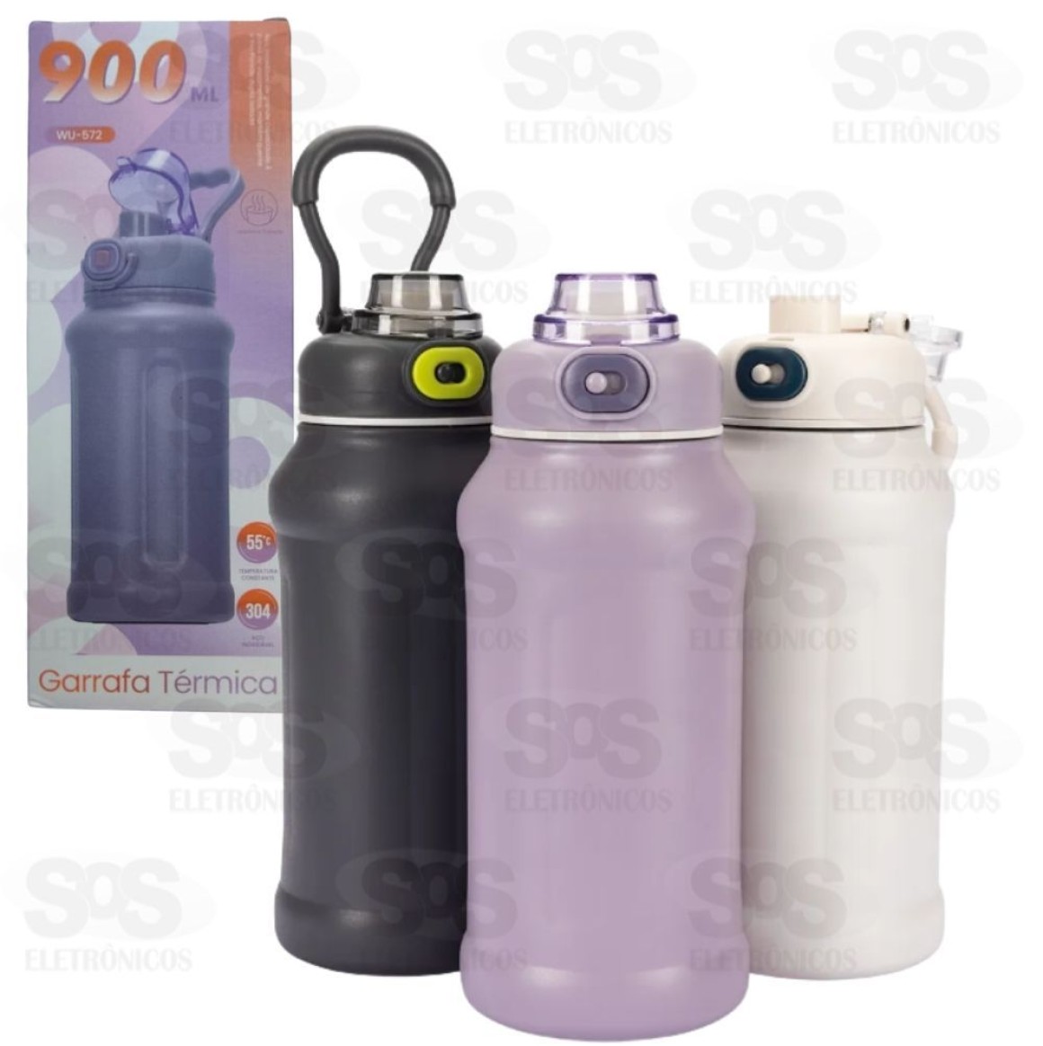 Garrafa Térmica 900ml Com Alça e Canudo Cores Variadas WU-572