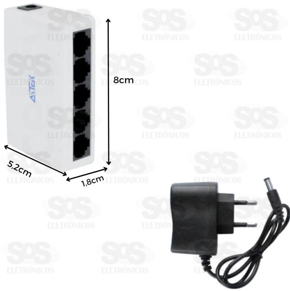 O ATS-105 opera em velocidades de 10/100Mbps, garantindo transferência de dados rápida e estável para navegação na internet, compartilhamento de arquivos e comunicação entre dispositivos na rede. Alimentado por uma fonte de 5V, ele é extremamente eficiente e de fácil instalação, sem a necessidade de configurações complexas.