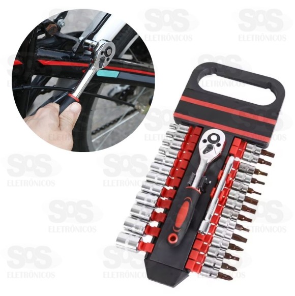 Jogo De Chaves Intercambiaveis 28 Peças FBG 3075 Jogo de chaves para deixar os trabalhos mais rápidos e fáceis, especialmente em áreas confinadas. Material: Metal Fácil de montar e usar com sistema de trava.