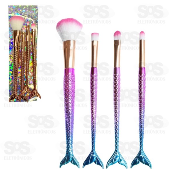 Kit com 4 Pincéis Rabo de Sereia para maquiagem, Pincéis com cores metalizadas, lindo e de ótima aplicação com cerdas macias!