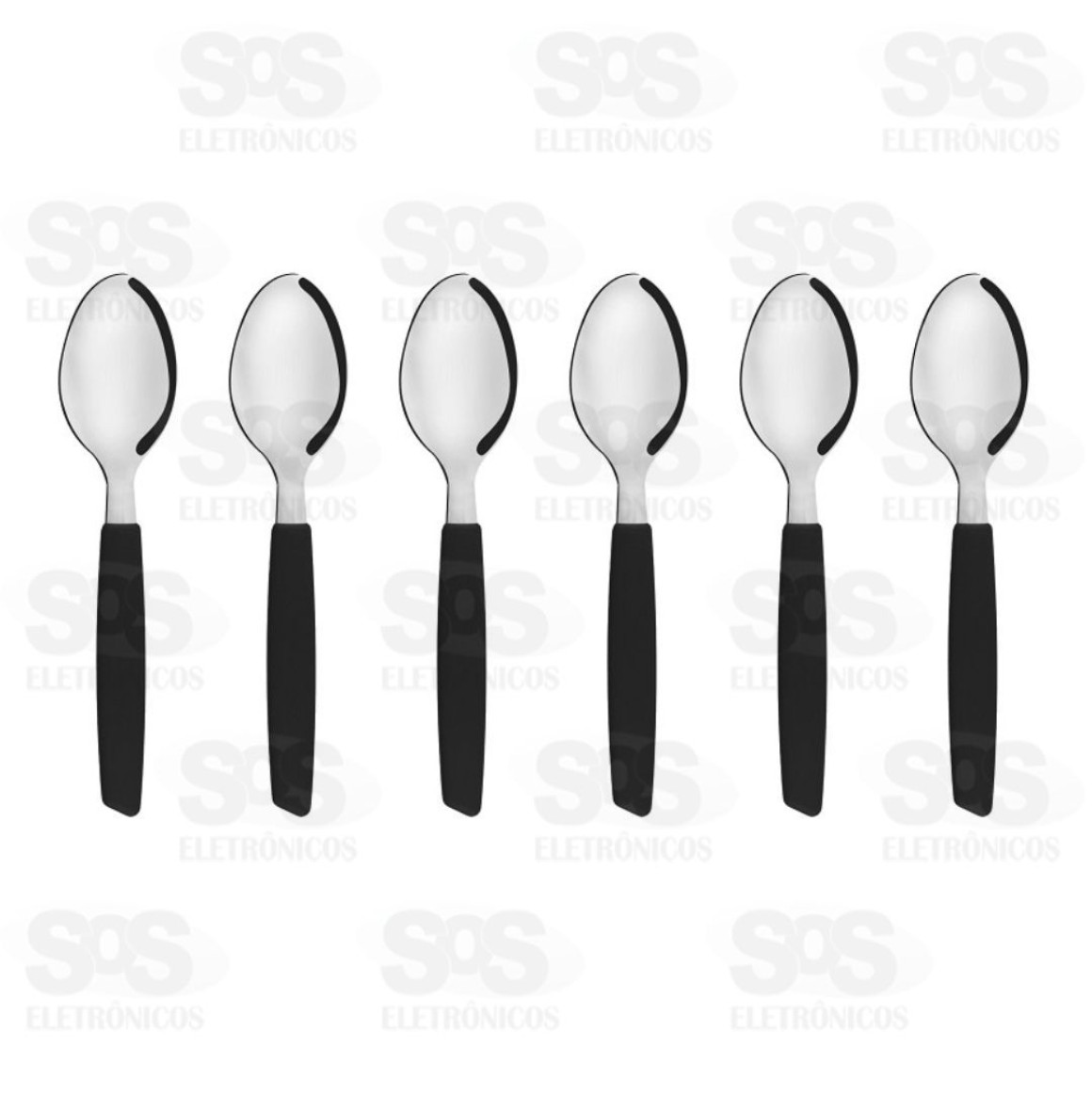 Colheres de chá feitas em aço inox com cabos de plástico.