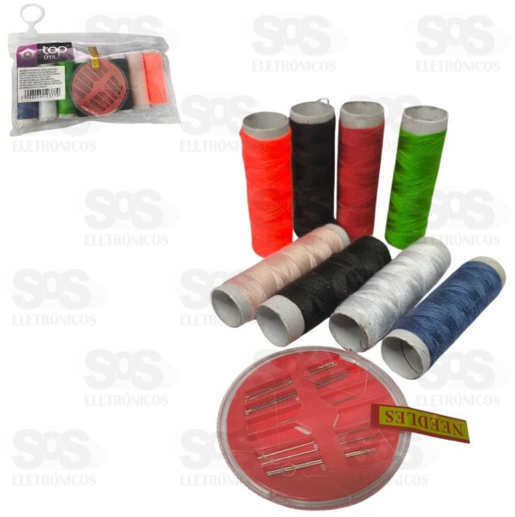 Kit Costura Com 8 Linhas e 10 Agulhas