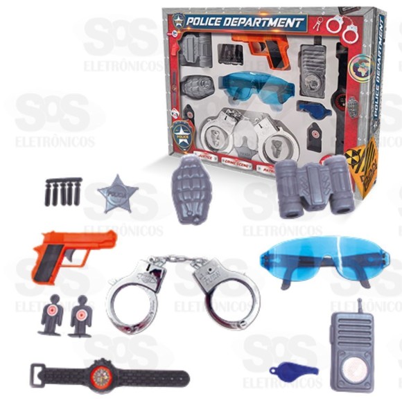 Itens Inclusos: 1 Binóculos, 1 Pistola, 1 Algema, 1 Relogio, 1 Apito, 1 Granada e 1 Óculos