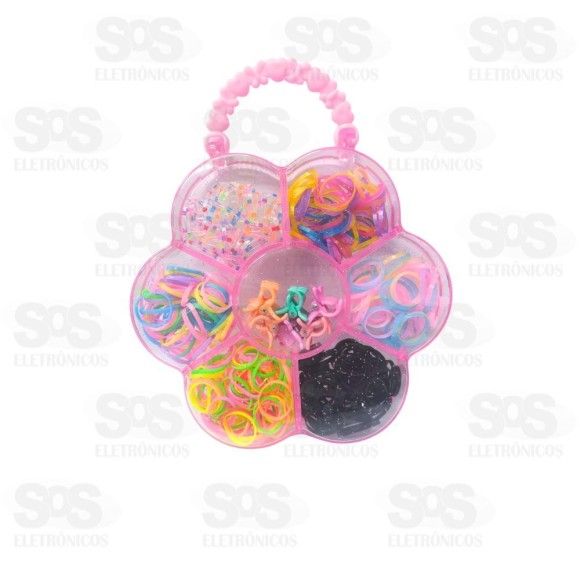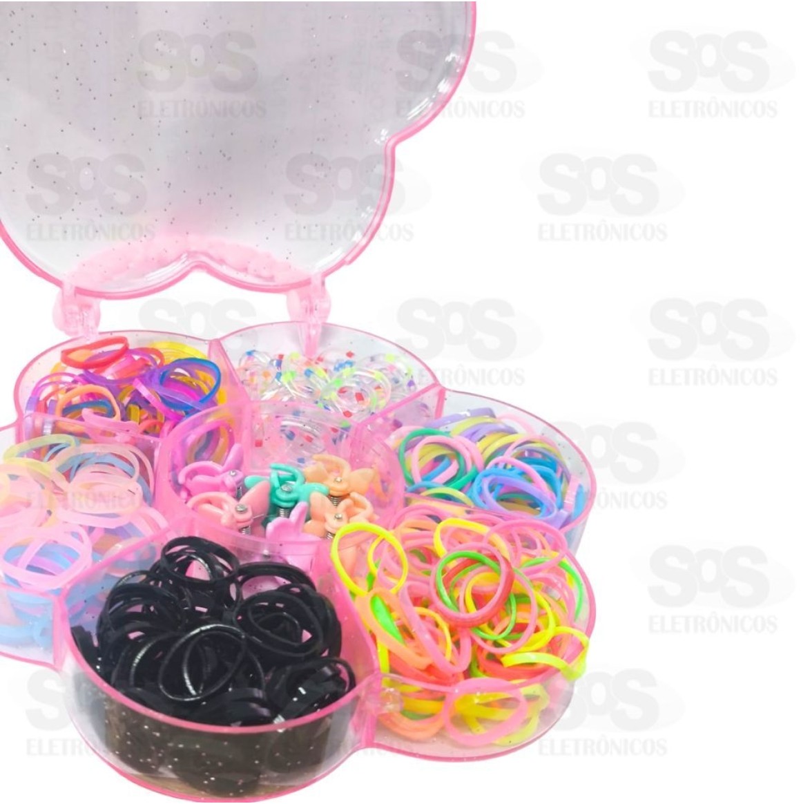 Kit Estojo Flor Elástico De Cabelo e Prendedor