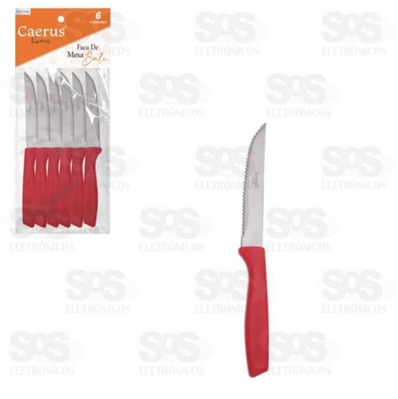Kit Faca De Mesa Com 6 Unidades na cor vermelha