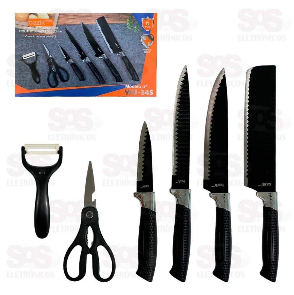 Kit Facas De Cozinha 6 Peças Bazik Prime WU-345