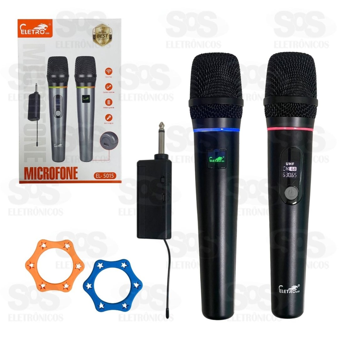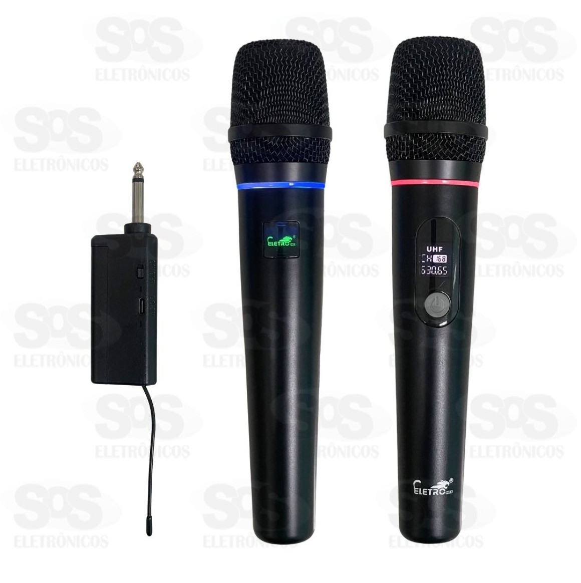 Kit 2 Microfones Sem Fio Dinâmico Com Painel Eletromex EL-5015