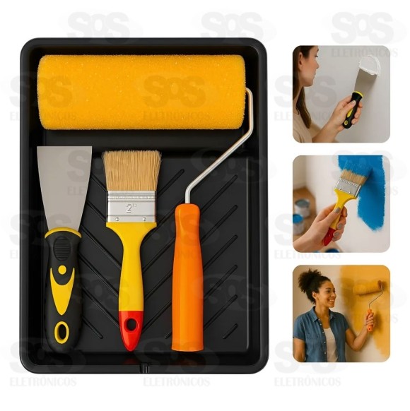 Kit Pintura de Parede 4 Peças B-Tek BT-560 Conjunto para auxiliar nas pinturas, retoques e acabamentos com qualidade. Acompanha uma bandeja para tinta, um rolo de espuma, um pincel e uma espátula. Compacto e funcional, ideal para evitar desperdícios. Tamanho da bandeja: 37 x 27 x 6 cm Tamanho do rolo: 31,5 x 18 cm Tamanho do pincel: 19 x 5 cm Tamanho da espátula: 19 x 5 cm