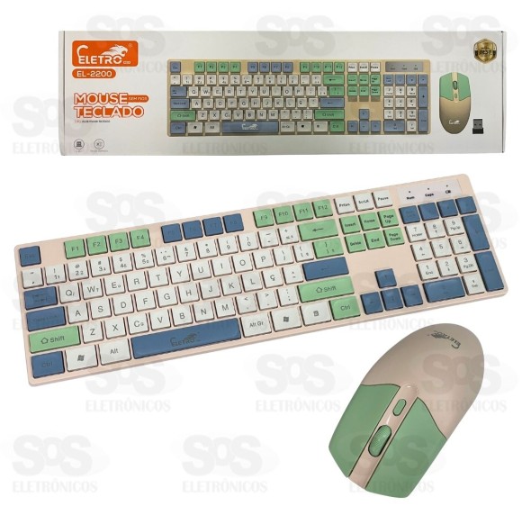 Kit Teclado e Mouse Sem Fio Eletromex EL-2200 Teclado e mouse desenhados para proporcionar um maior conforto e desempenho na hora do trabalho ou jogos. Conexão Wireless com nano receptor USB 2.0. Ambos possuem frequência de 2.4GHz. Sistema Plug and Play, com transmissão em até 10 metros. Alimentação: Pilhas (não inclusas) Alta compatibilidade com diversos sistemas operacionais. Tamanho do teclado: 43 x 12 cm Tamanho do mouse: 12 x 6 cm Cores variadas.