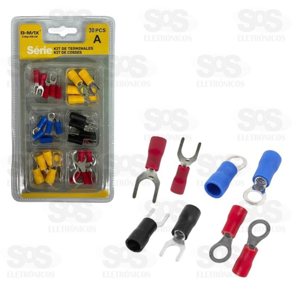 Kit Terminal Elétrico 30 Peças B-Max BM-340 Terminais elétricos projetados para criar conexões firmes e seguras. Evita curta-circuito e falhas no sistema. Também protege contra umidade e corrosão. Acompanha 30 peças de diferentes tamanhos.