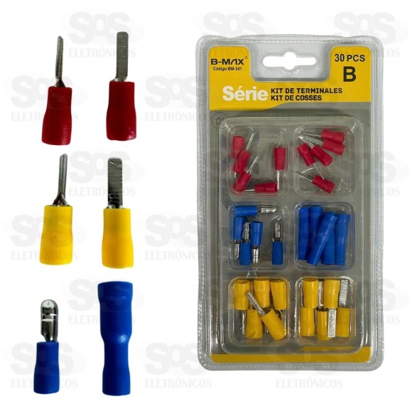Kit Terminal Elétrico 30 Peças B-Max BM-341 Terminais elétricos projetados para criar conexões firmes e seguras. Evita curta-circuito e falhas no sistema. Também protege contra umidade e corrosão. Acompanha 30 peças de diferentes tamanhos.