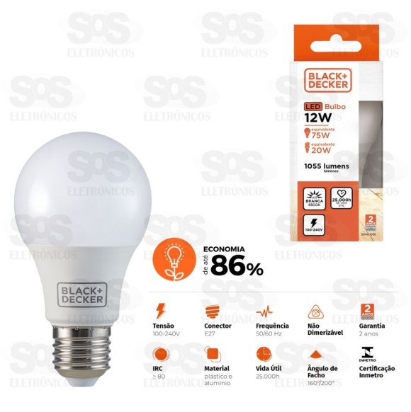 Lâmpada LED Bulbo 12W E27 Luz Branca Black+Decker BDA6-1000