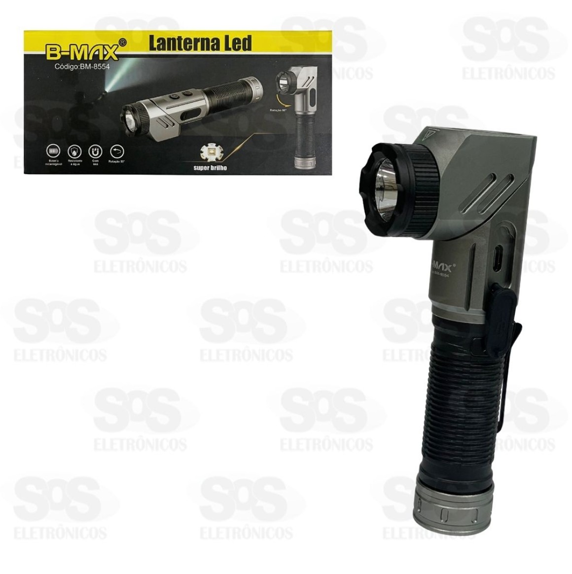 Lanterna LED+COB Rotação 90° Recarregável B-Max BM-8554 Esta é uma ferramenta de muita importância para atividades como montanhismo, trilhas, caças, pescas, escaladas, acampamentos, patrulhas de policiais e bombeiros, ou apenas para ter no seu carro como forma de precaução. Feita em liga de alumínio, ela é resistente ao desgaste, resistente à água e antiderrapante. Oferece iluminação intensa e clara, proporcionando uma visibilidade de até 2.000 metros. Modo de luz: Super forte, forte, média, fraca e sos Bateria recarregável de alta capacidade. Potência: 30W Tamanho: 16 x 3 cm Cor: Preto e cinza