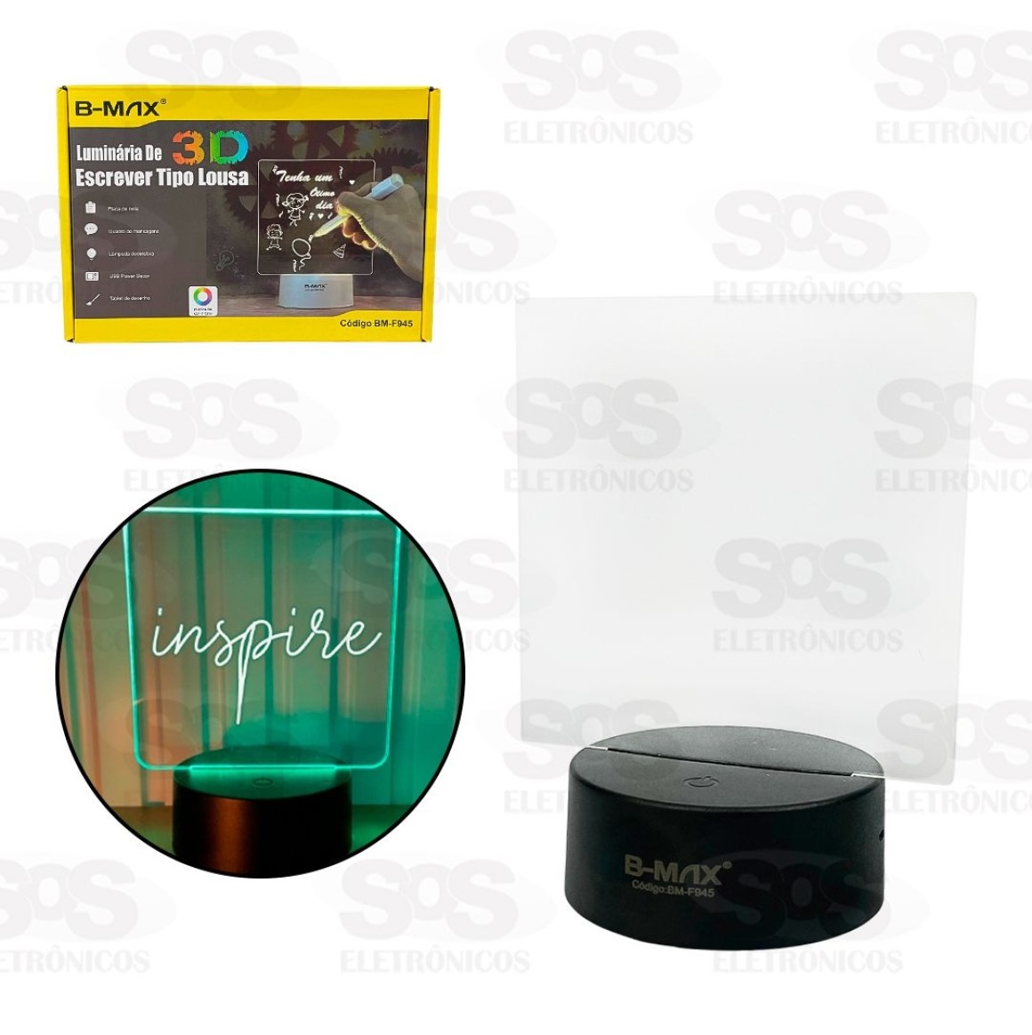 Luminária LED 3D Tipo Lousa Com Caneta B-Max BM-F945
