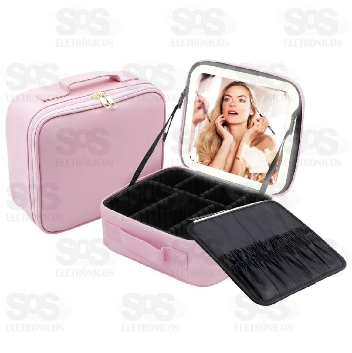 Maleta com diversos compartimentos para guardar maquiagens e acessórios diversos.
