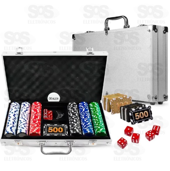 Maleta de alumínio resistente e compacta, com design elegante. - 300 fichas de alta qualidade, com peso padrão de cassino (11 gramas). - Fichas sem numeração, disponíveis em cinco cores (vermelho, azul, verde, preto e branco com azul). - Acompanha 30 cartões (15 de 500 e 15 de 100) e 5 dados, proporcionando versatilidade para diferentes jogos. - 1 peça dealer para organização profissional durante as partidas. BENEFÍCIOS - Versatilidade: Ideal para diversos jogos de cartas e dados. - Portabilidade: A maleta facilita o transporte e mantém tudo organizado em um só lugar. - Entretenimento garantido: Perfeito para encontros com amigos, noites em família ou festas temáticas. - Presente especial: Uma escolha incrível para presentear amantes de jogos estratégicos e desafiadores. - Experiência autêntica: Fichas com peso padrão de cassino, proporcionando sensação realista durante as partidas. ESPECIFICAÇÕES Modelo: LK-5030. Dimensões da maleta: 39x6x20cm (CxPxA). Ficha técnica das fichas: Altura: 5cm. Espessura: 0,03mm. Peso: 11 gramas cada. Conteúdo: 300 fichas, 30 cartões, 5 dados, 1 dealer. LISTA DE EMBALAGEM 1 Maleta de alumínio. 300 fichas (em cinco cores: vermelho, azul, verde, preto e branco com azul). 30 cartões (15 de 500 e 15 de 1000). 1 Peça dealer. 5 Dados. 2 Chaves para travamento da maleta.