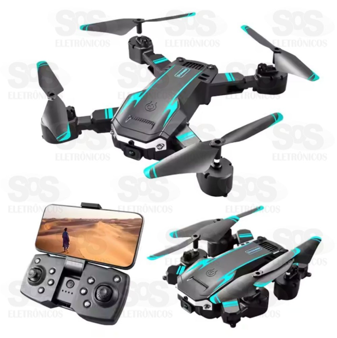 .O drone possui uma bateria lítio 3,7V 650mAh com um tempo máximo voo 20 minutos.