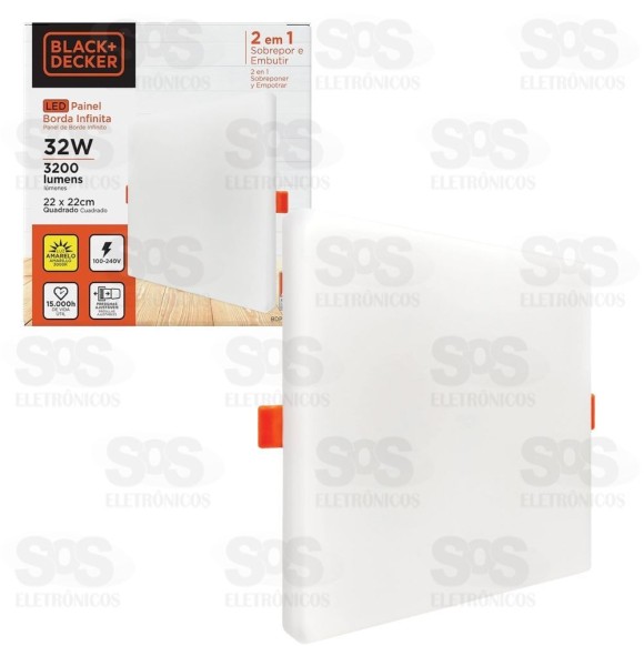 Painel Quadrado Borda Infinita 2 em 1 LED Branco 32W Black+ Decker BDPD3200-06