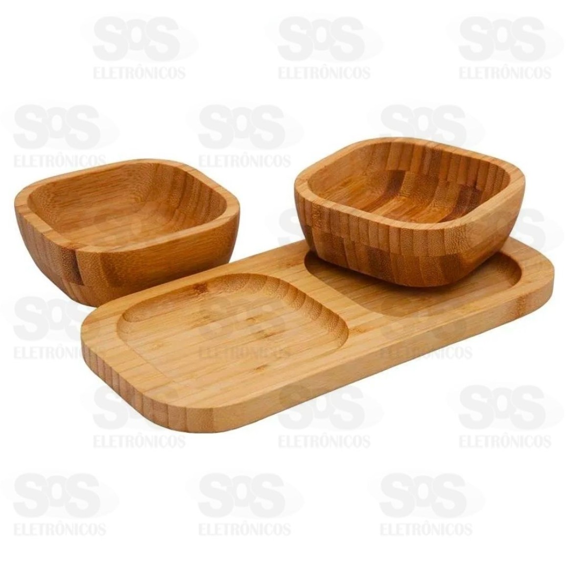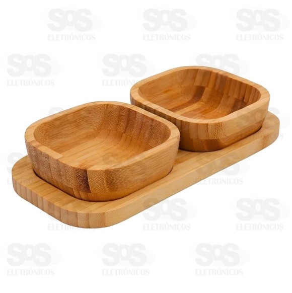 Petisqueira de Bambu Com 2 Tigelas TOP2263